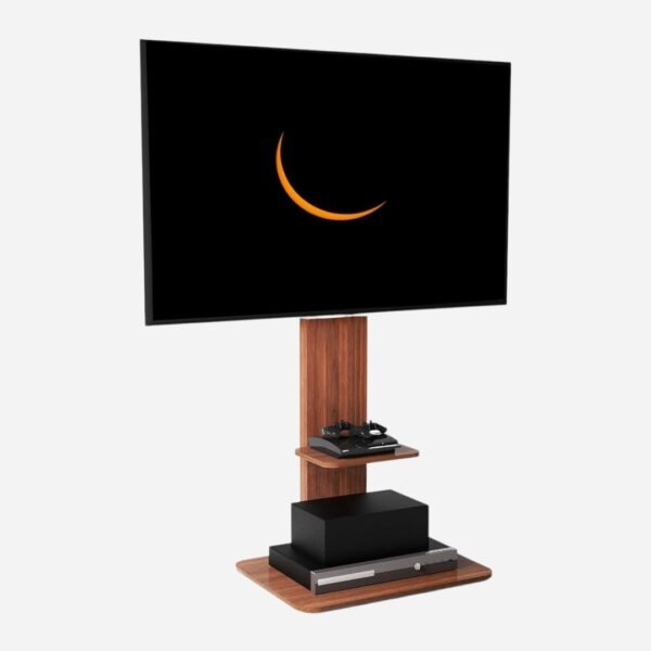 خشب متين وأرجل حديدية تحافظ على توازن الشاشة حتى مع الاستخدام اليومي